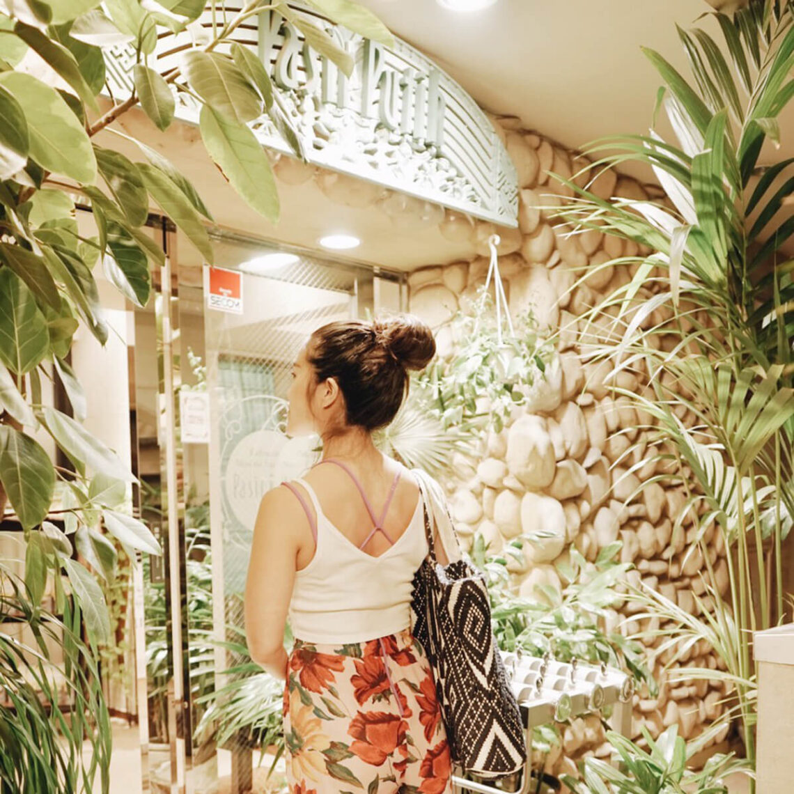 駅の目の前に大きく”砂塩風呂”と書いてあるビルへ入り、エレベーターを降りるとすでに南国の雰囲気いっぱい。Pasir Putihは女性専用なのでお風呂あがりに男性とすれ違うのが苦手な人も安心。スタッフさんも全員女性だ。