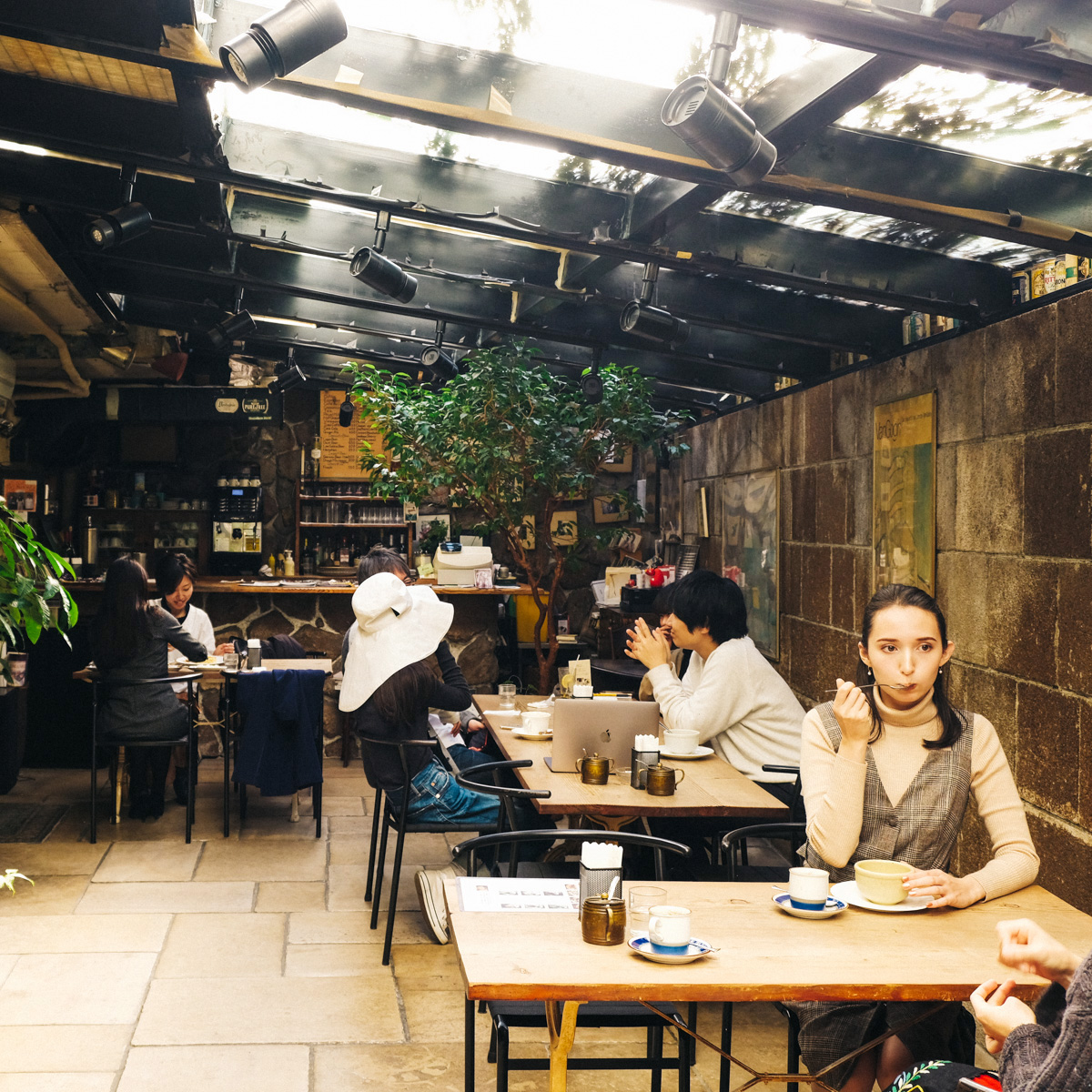 三軒茶屋の商店街の奥に突如現れるカフェ。商店街の駅から長いアプローチを抜けて佇むカフェは、住民の憩いの場となっている。文中にもあるように、通りからのアプローチが特徴的。