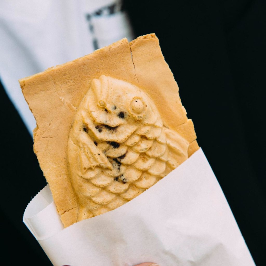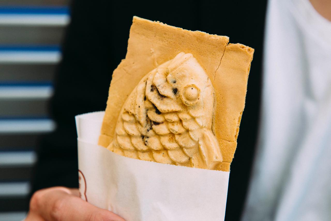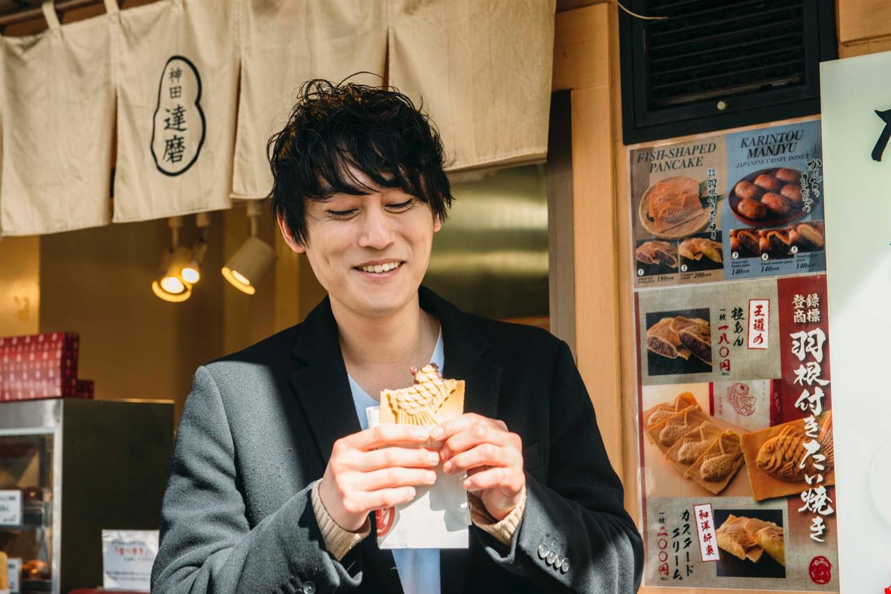 駅に向かって歩いていると、行列ができているお店を見つけた。焼きたてたい焼きをその場で食べることができる「たいやき神田達磨」だ。