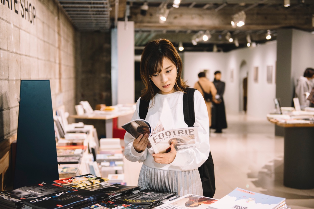 つまり、公園に行くように、持ち物はちょっとした好奇心のみでOK。週末にはB3FからB2Fにかけてアートブックがずらりと並ぶ。