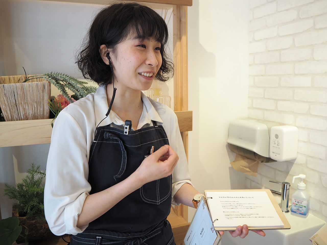 まずは1階のマルシェで、カフェの利用について説明を受けます。
