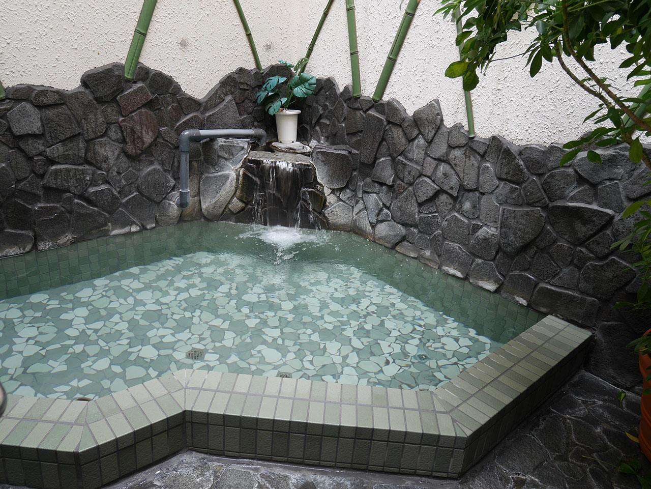 塩サウナで肌の角質を柔らかくしたあと、美肌の湯に浸かれば、肌はしっとりツルツルに。