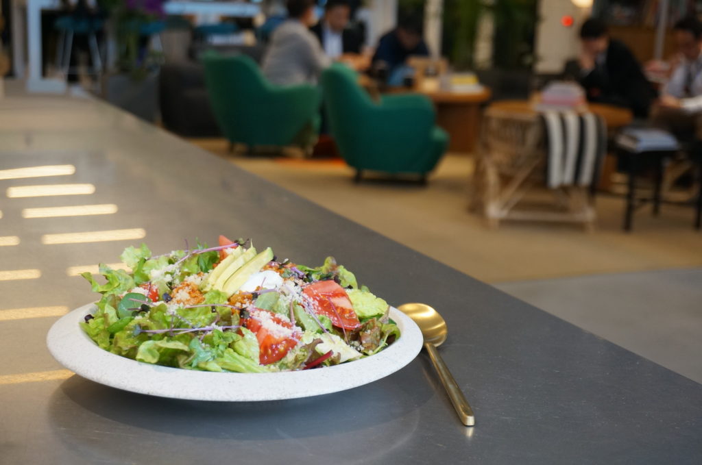 そのひとつの取り組みが、食事メニューの充実と時間別メニューをなくしたことだ。特に平日はWeWorkのメンバーや周辺で働く客が多い。原宿の街もWeWorkというコミュニテイも、自由なライフスタイルの人が共存する場所。だからこそ、あらゆる人の生活にフィットできるよう、モーニング・ランチ・ディナーという時間枠を取り払った。「朝からがっつりご飯を食べたいという声や、忙しくてランチタイムを逃してしまったという声に応えたくて」。