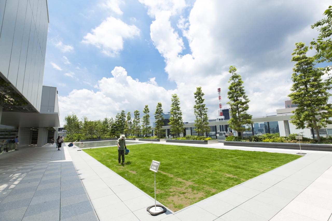 6階屋上からはNTTドコモ代々木ビルが間近に見え、眼下には新宿駅から伸びる線路を電車が行ったり来たり。緑もいっぱいで、風が気持ちよく感じられる屋上だ。
