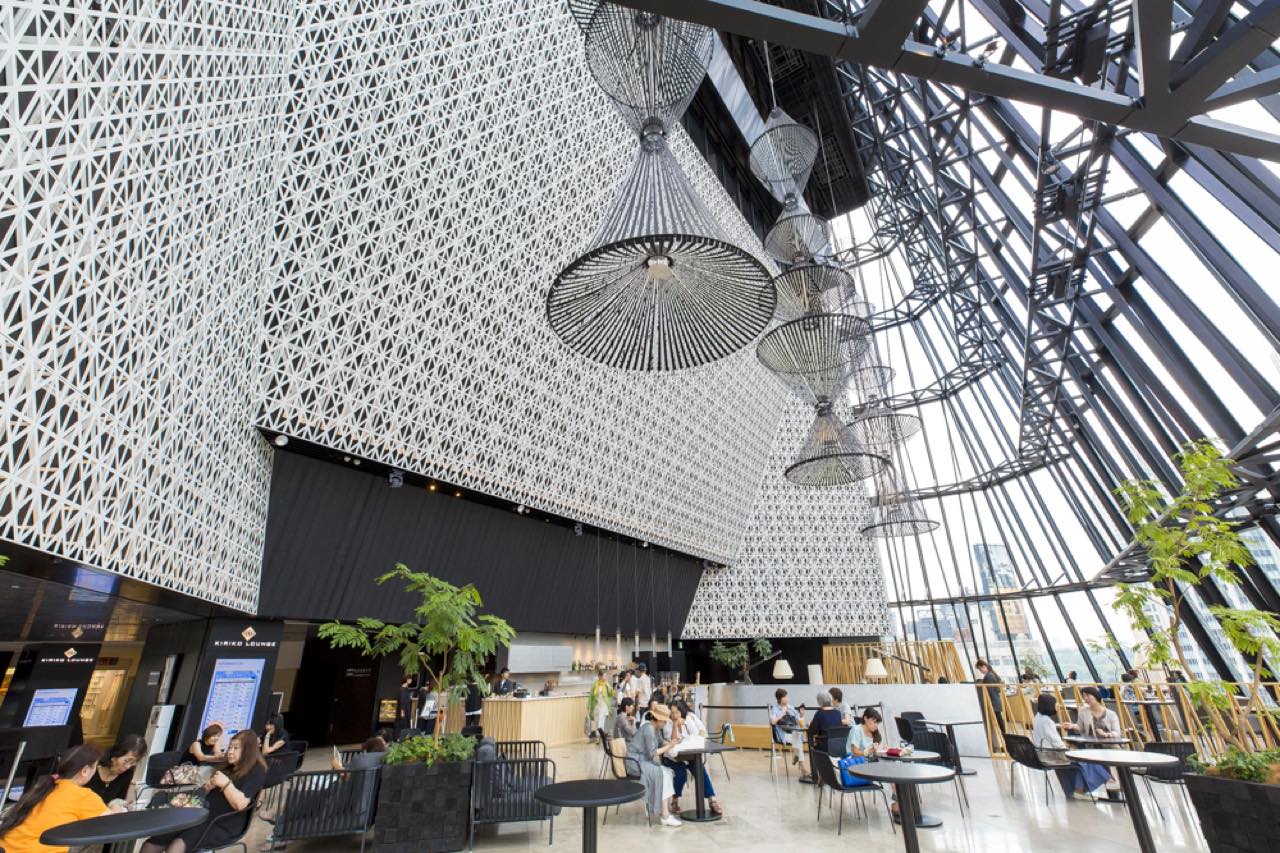東急プラザ銀座のキリコラウンジは、吹き抜けが開放的!銀座の街を昼も夜ものんびり眺めることができる絶好の休憩スポット。
