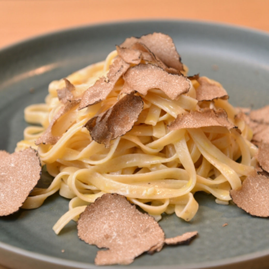 イタリア産オーガニック小麦を使用したパスタに農家直送の卵、北海道産バター、オーストラリア産オリーブオイル、産地から取り寄せたトリュフ…など、食材へのこだわりは尋常ではない。そんなOUTの創業者は3人のオーストラリア人で「One dish. One wine. One artist. 」がコンセプト。ワインもトリュフにマッチする赤ワイン1銘柄のみという徹底ぶりだ。