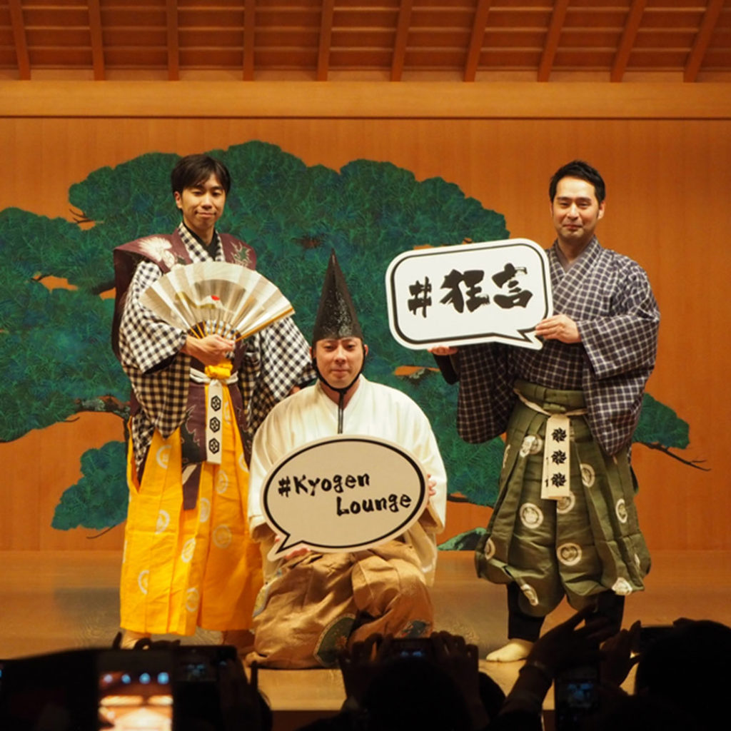 『KYOGEN LOUNGE』は、日本の伝統芸能である狂言を気軽に楽しんでもらえるよう、老舗料亭「金田中」のフード&ドリンクや着物DJによるプレイが楽しめるパーティに、狂言をプラスしたライブイベント。狂言の若年層への普及拡大を目指し、2010年からスタートした。2ヶ月に1回のペースで開催されている。
