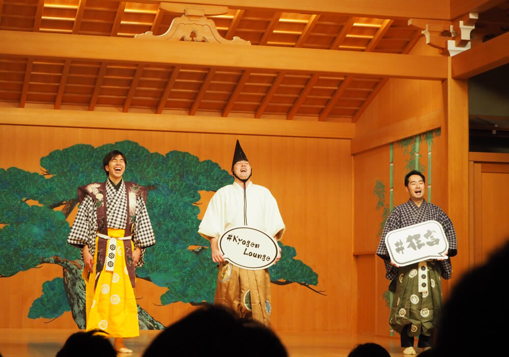 ラウンジタイムを楽しんだ後は、いよいよ開演。といってもいきなり本編が始まるわけではなく、狂言とは一体どういうものなのか、解説からスタート。