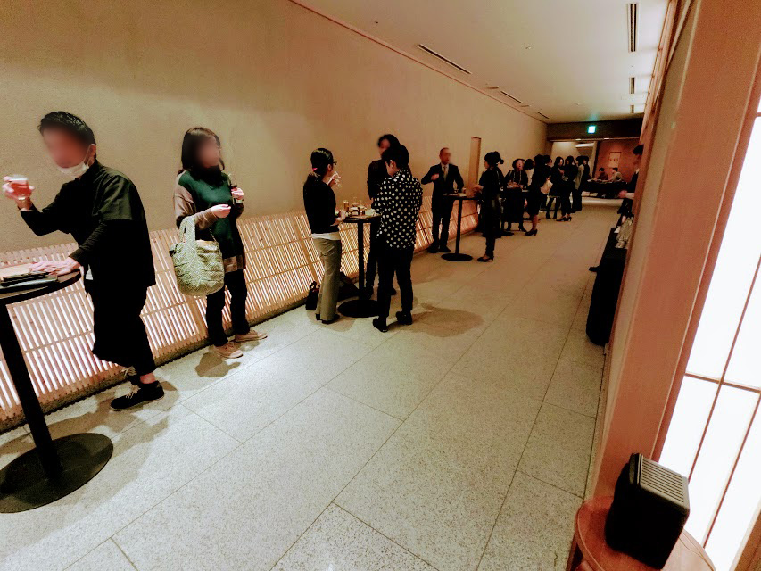 狂言の舞台がスタートする1時間前にラウンジがオープン。ここで開演までお酒とフードが楽しめる。