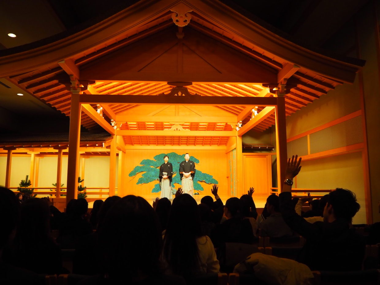 最後は狂言の「笑い声」を教えてもらった。会場全体でひと笑いして気持ちよく終了!