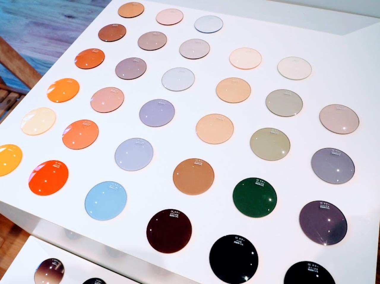 まずは自分に似合う形のフレームを探し、その後好きなレンズをチョイス。世界基準の大手レンズメーカーの協力の元、高品質レンズを取り扱っており、自分の好きなカラーレンズや、スキンケア効果のあるレンズ、特殊レンズを要望に合わせて入れてくれる。