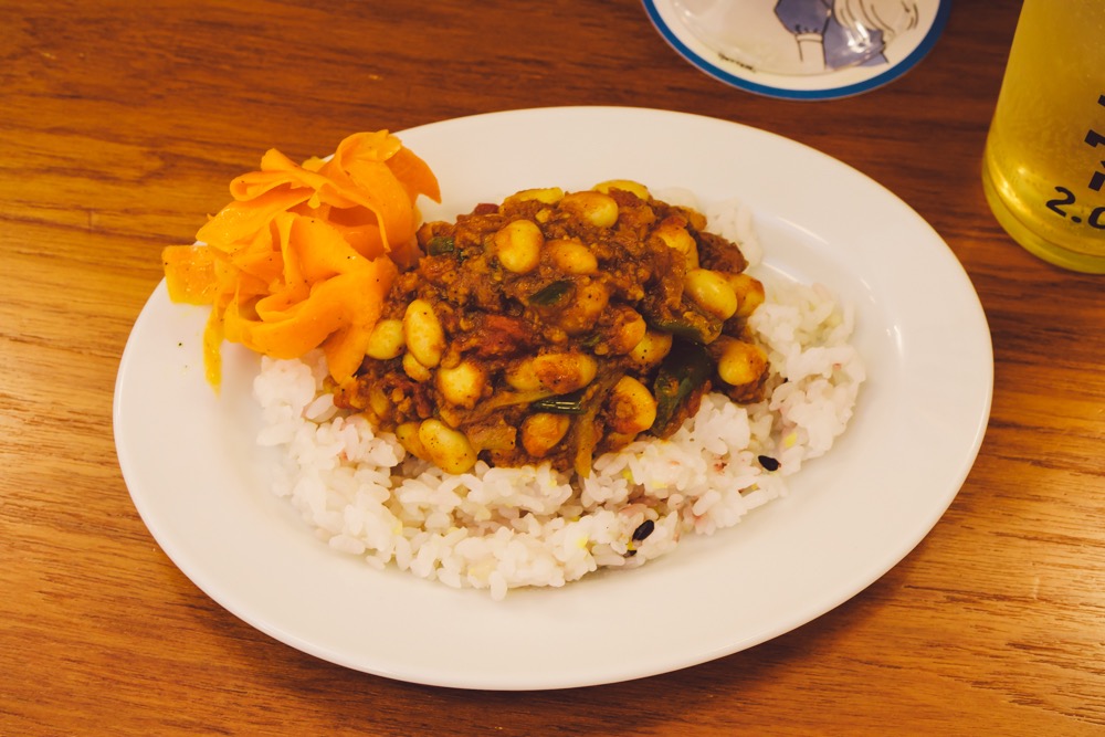 と、店内がスパイスのいい香りで満たされていることに気づく。なんだ、この香りは。「『大豆のキーマカレー』ですかね?お酒の〆に召し上がられる方も多いですよ」