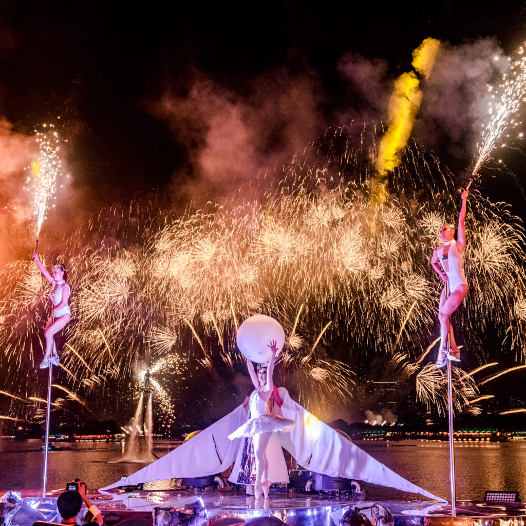 花火と音楽だけではない。国内外から集められた選りすぐりのパフォーマーが魅せるショーも大迫力だ。