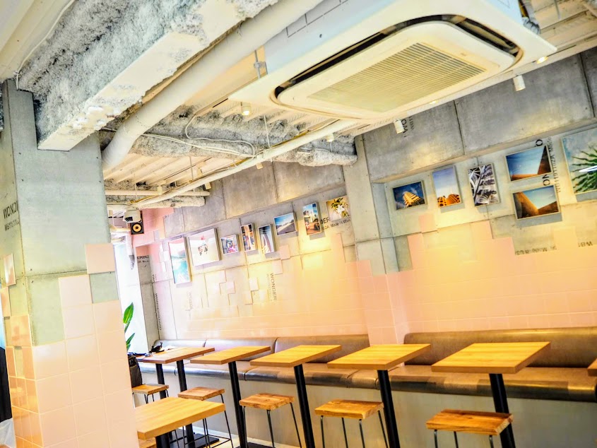 店内もコンクリートの無機質な壁やスチールがアクセントになり、アートのように飾られたフォトパネルもメルヘンな雰囲気とはまるで違う。男性も違和感なく過ごせるだろう。