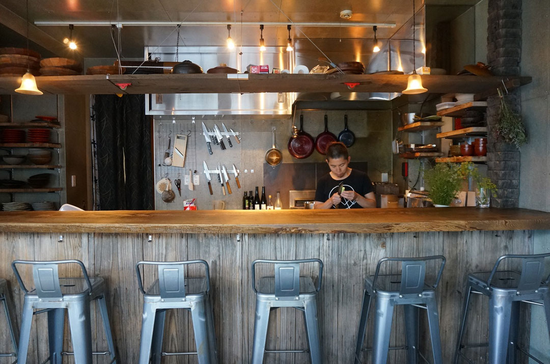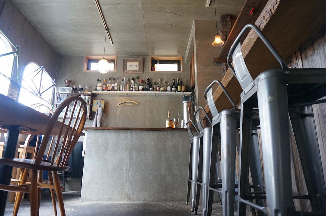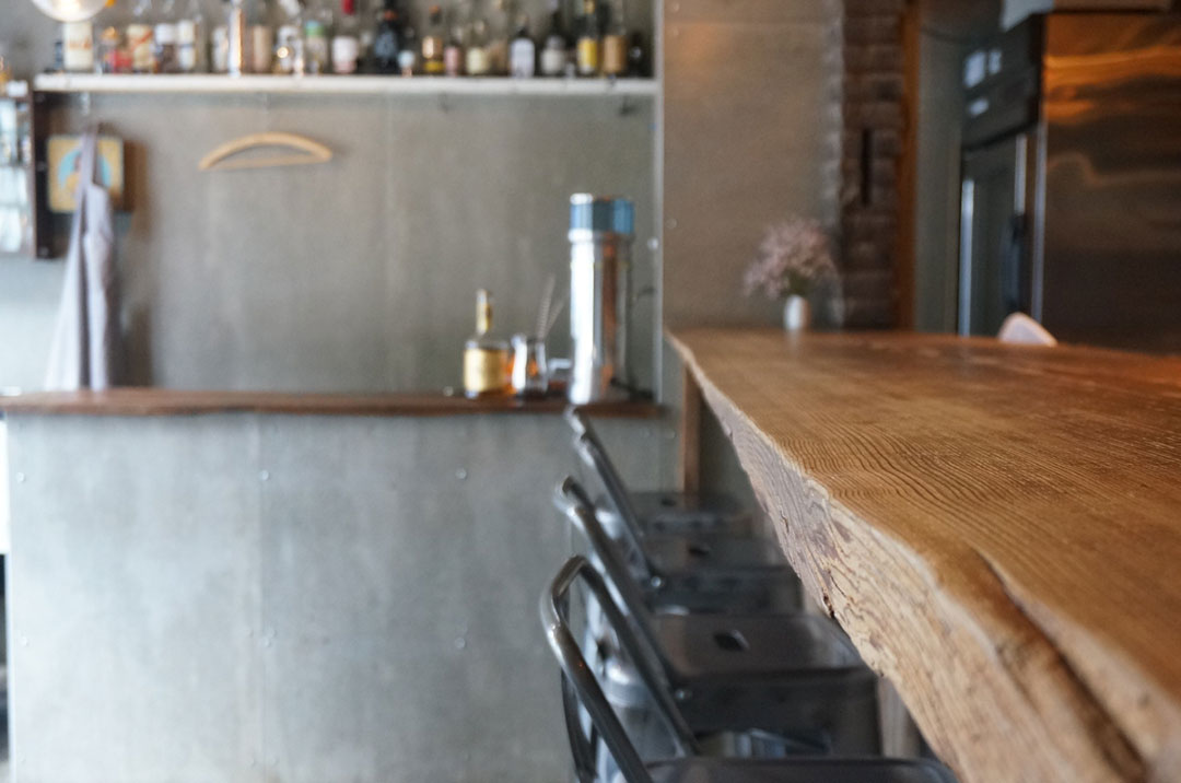 アメリカンヴィンテージを思わせるガレージ風のカウンターは変わらない。ここに、和食料理人が?これはなかなかおもしろくなりそう。