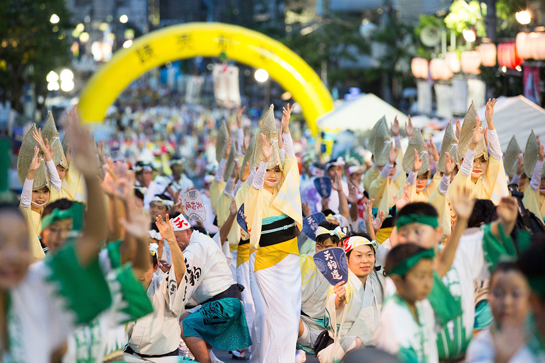 JR高円寺駅前〜東京メトロ新高円寺駅の商店街と高南通りを、さまざまな連(グループ)が踊り歩く姿は圧巻。近年では徳島県をはじめ地方からの参加も多く、バラエティ豊かな阿波踊りが楽しめる。高円寺北口広場ブースと南口中央公園ブースも要注目。それぞれ徳島県産グルメを中心に提供する屋台村が設けられ、お腹もしっかり満足させることができるだろう。
