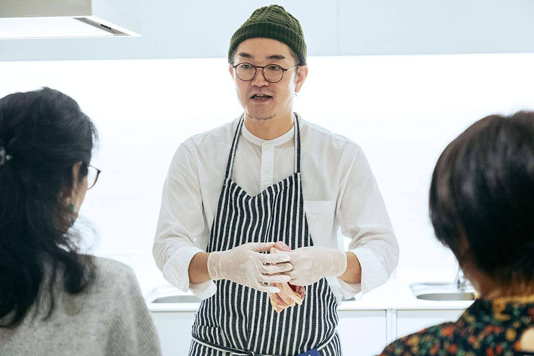 「鶏肉は皮を取ってから入れるのが、インドカレーのスタンダード。脂肪もしっかり取って。じゃないと仕上がりが油だらけになるんです。結構な量の油を使いますからね」。実演しながらゆっくり説明する講師を、参加者が熱心に見つめる。「そんなに集中して見られると緊張しちゃいますね」。優しいムードでクッキングは進んだ。