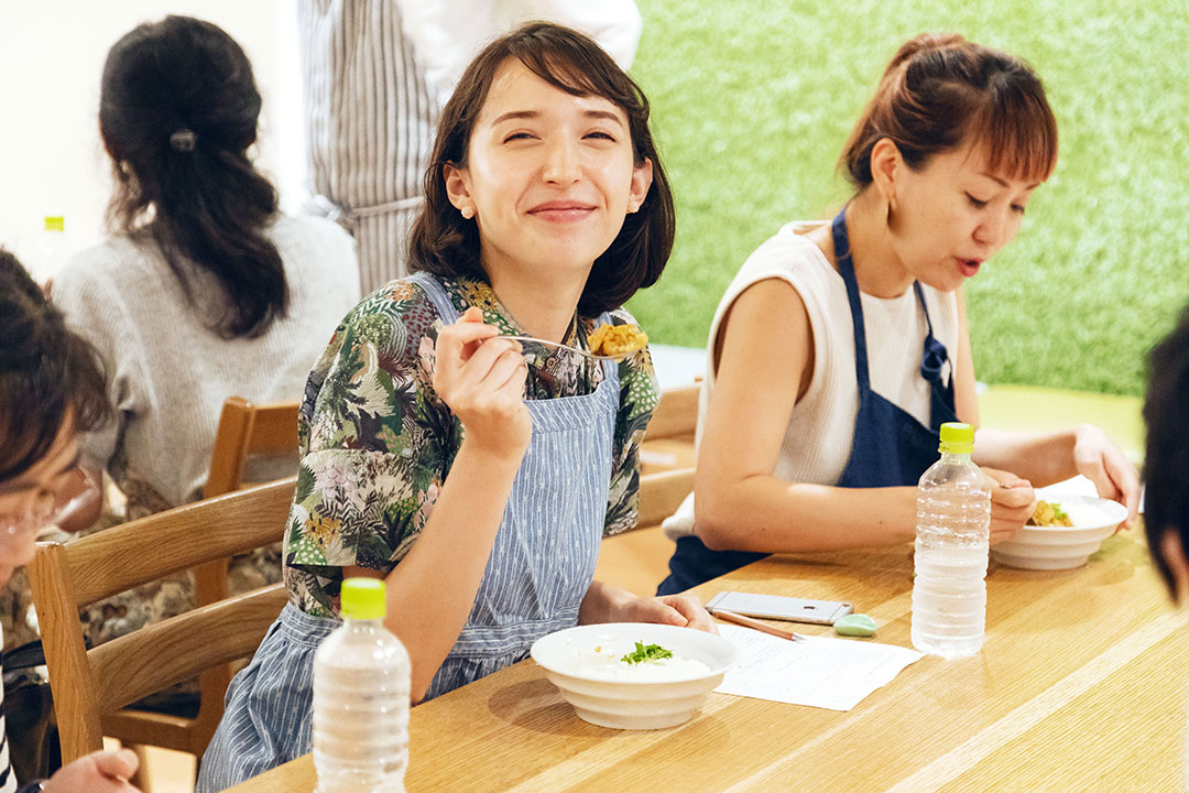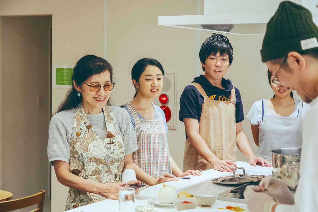 皆一様に「美味しい!」と笑顔で感動。さほど強い辛味ではないのに、スパイスの香りはしっかりと。鶏肉のホロホロ加減も良い感じ。予想以上の出来栄えにスプーンだけでなく、参加者同士の会話も進んだ。「調味料はスパイスを引き立てる効果のある塩だけでOK。ただし、入れ過ぎないように気をつける。油多めの強火で炒めると、スムーズに玉ねぎがアメ色になるなど、学んだことが多かったです」とは、料理好きな女性参加者の談。あまりキッチンに立たないという人からは「早速、明日チャレンジします!」という感想も飛び出した。