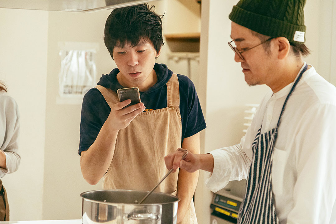 料理経験を問わない初心者歓迎イベントのため、調理のほとんどは高木さんが進行。それでも「ホールトマトの皮は取らない」、「たまねぎは繊維を断つ感じで切ると、煮込んだときに繊維がほどけてカレーに馴染みやすい」など、随所にアドバイスを。それに応えるようにメモを書いたり、スマートフォンで撮影したりと、積極的な姿勢で挑む参加者たち。
