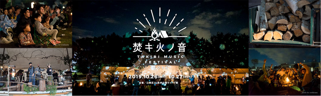 週末アクティビティのひとつとして浸透しているキャンプがイベント化した、「焚キ火ノ音-TAKIBI MUSIC FESTIVAL-」。2018年まで「TAKIBI CLUB 〜Bonfire & Music Festival〜」として開催されていたアウトドア音楽イベントが、2019年度から火、音、木、食をキーワードに、より焚火にフィーチャーしたイベントとして生まれ変わった。