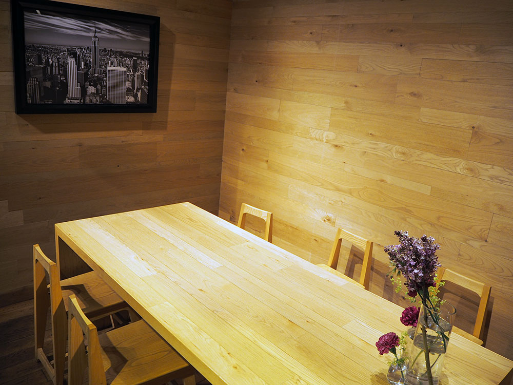 店に入るとウッド調で統一されナチュラルな内装が洒落ている。カウンター25席とテーブル13席から構成されており、気軽に立ち寄りたくなる雰囲気。