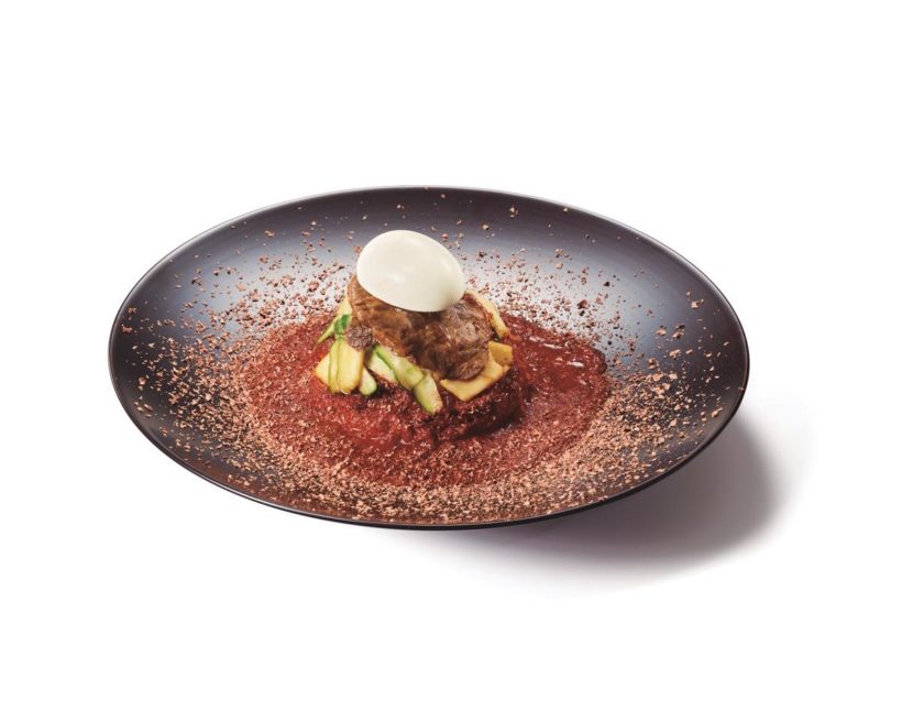 唐辛子ペーストで和えた冷たい麺に、野菜・カカオ風味の豚チャーシュー・ゆで卵をトッピングし、カカオの果肉を煮詰めたハレヤソースとカカオペーストをかけている。本当に美味しいの? と、疑問を持ってしまう組み合わせだが、これを手掛けた太田哲雄氏はイタリアの星付きレストランなどで経験を積み、カカオブランド「LA CASA DI Tetsuo Ota」を運営している一流シェフ。この驚きのメニューがどんな味なのか、ぜひ一度試してほしい。