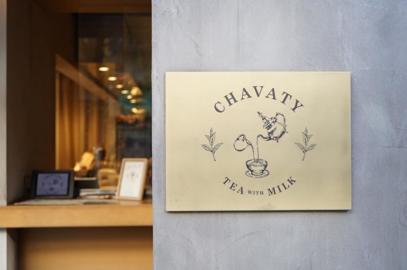 上品なゴールドの看板が飾られたダークグレーのモダンな外観は、おしゃれな店が並ぶ通りの中でも一際目を引く。CHAVATYは“ティーラテ”、つまりエスプレッソのように抽出したお茶にミルクを加えた、濃厚ミルクティー専門店。ラテは一般的にアレンジという位置づけだが、ここではそれが主役を張っている。
