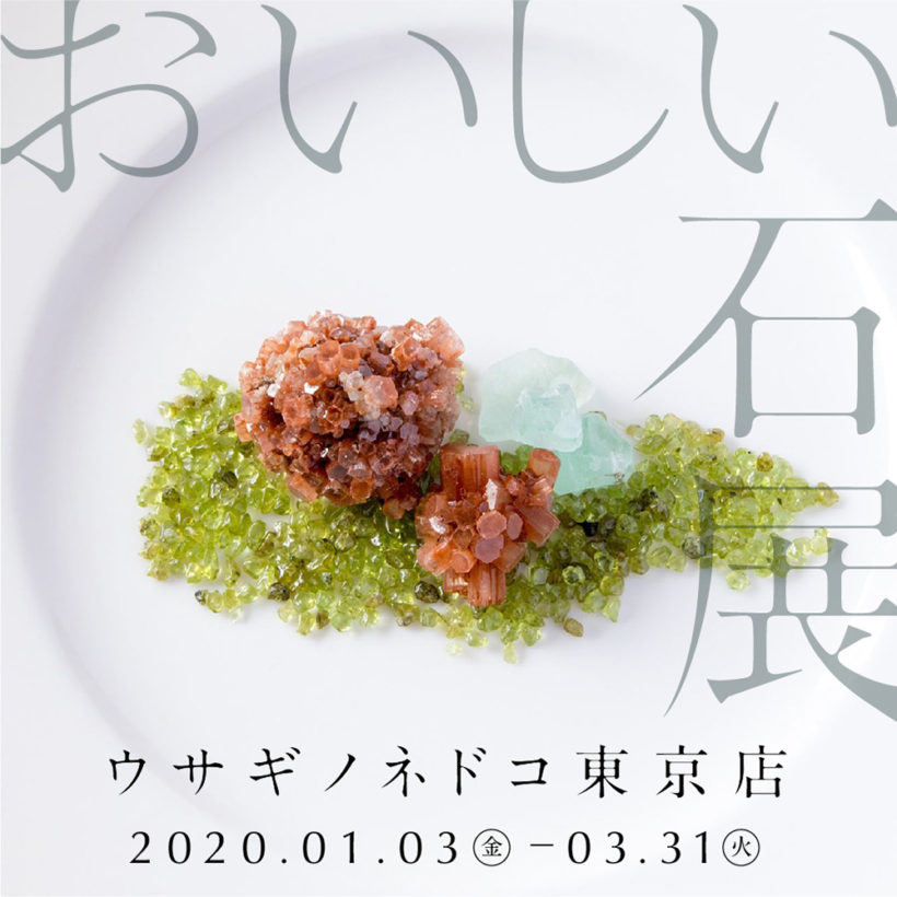 世界各国から集まった様々な鉱物標本の中で、食べ物の名前が付いた石や、おいしそうに見える石を中心に展示販売する「おいしい石展」が開催中。これらの鉱物を実際には食べることはできないが、石に見立てたお菓子など「おいしい石」もたくさん用意されているという。