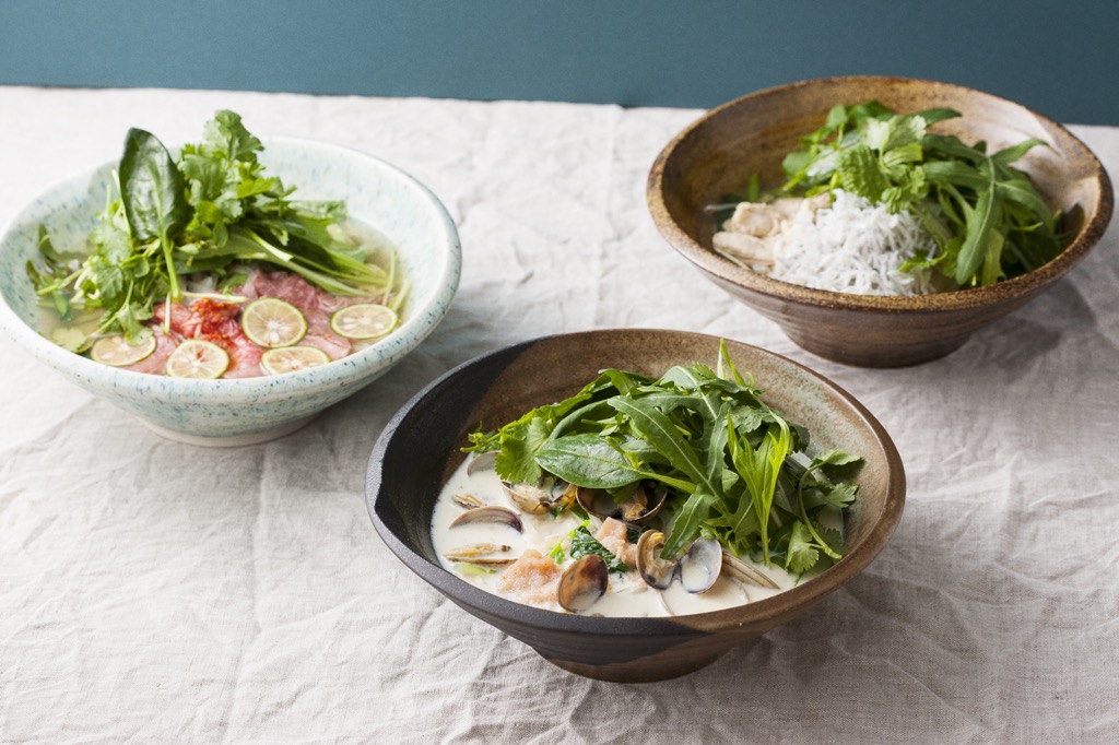 そんなタニタカフェで提供されているのは、「楽しくておいしいヘルシーメニュー」をコンセプトに掲げたオリジナル料理。野菜を7〜8種類も使用した「有機野菜ともち麦のサラダボウル」や「有機野菜と和だしの米麺(フォー)」など、野菜の美味しさを引き出したメニューが並ぶ。もちろん、一汁三菜のワンプレートランチやスイーツなどもあり、飽きのこない豊富なラインナップを楽しめる。