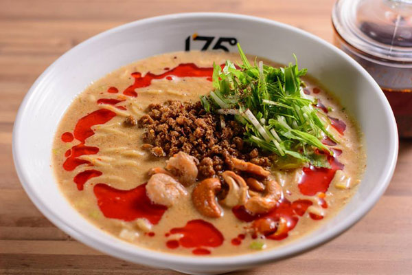 日本の有名店はもちろん、本場四川省まで訪れ食べ歩いた店主による担々麺専門店。四川料理と日本のラーメンの技術が合わさった究極の一杯をいただける。担担麺は「汁あり」、「汁なし」の2種類、シビれのレベルは、「シビれない」、「シビれる」、「すごくシビれる」から選択可能。また、温泉玉子やパクチー、水菜など追加トッピングも豊富だ。ちなみに店内は白を基調とした和モダンな雰囲気のため、ひとりでも気軽に入ることができる。