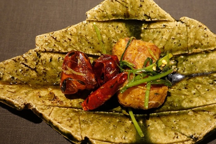ミシュラン2ツ星を獲得した「茶禅華」のシェフは、中国料理を学んだのち日本料理店で修行した異色の経歴の持ち主。そのため中華と和食のコンビネーションによるオリジナリティあふれる料理をいただける。そんなこの店で食べられる麻辣な料理は「大和豚の四川の香り炒め」。華やかな香りの朝天辣椒と刺激の強い鷹の爪が、スペアリブと絶妙な相性を発揮する逸品なのだ。