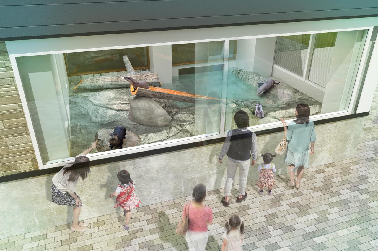 そして、花に囲まれた温室にはコツメカワウソの展示スペースを設置。スロープを滑り降りたり、水の中の洞窟を通り抜けたり、穴から顔を出したりと、その愛らしい姿を間近で見ることができる。