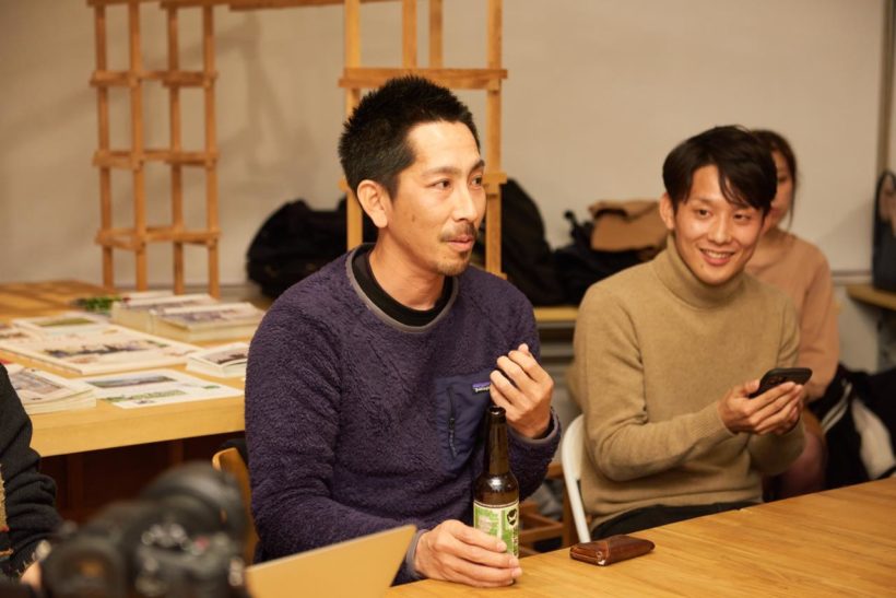 今夜のイベント内容は「これからの林業を考えナイト」。実際に林業に従事するゲストを中心に、まずは「乾杯」からトークセッションが始まる。