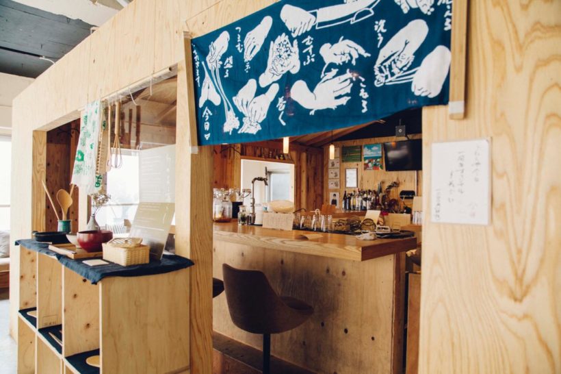 夜はおつまみとお酒で本格的な酒処に変身。ほのかな灯りに誘われるように全国からさまざまな職種の老若男女が集い、言葉を交わす場所となる。