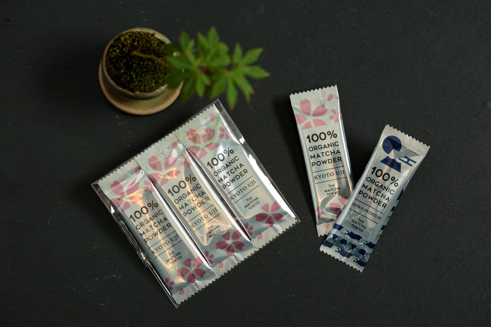 ドリンクの他、自宅でも楽しめる個包装の抹茶パウダーも販売中。