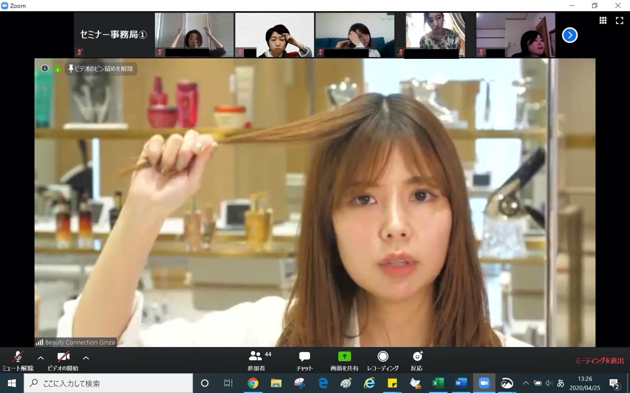レッスンは、ビデオ会議システム「Zoom」を使用して開催。初回はBeauty Connection Hair Salon店長・石橋千紘が講師を務めた。