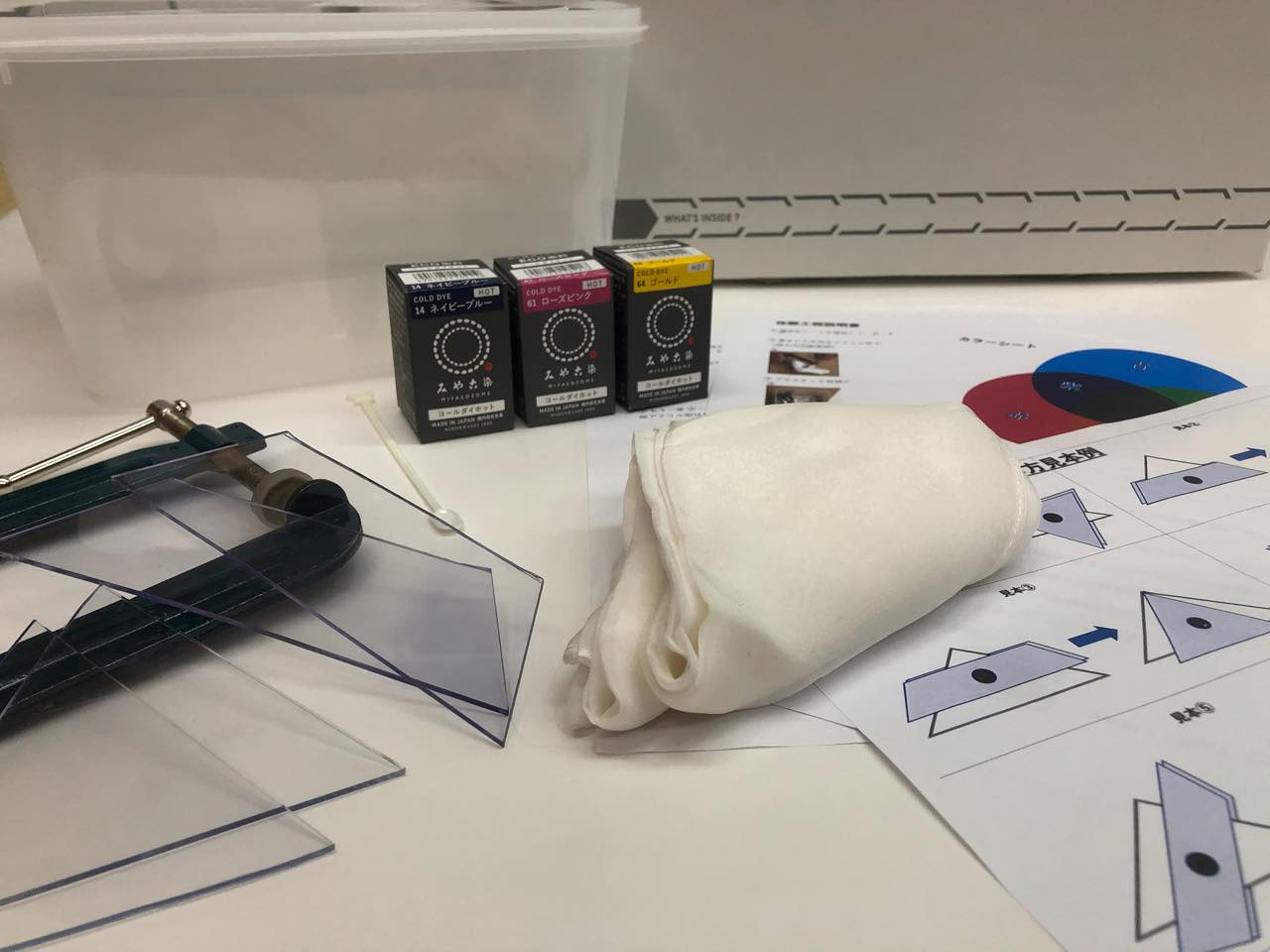 また、「京の絞り染め宅配便」には、多めの染料が同梱されている。この体験では染めの技術をしっかりと教えてもらえるので、後日、手持ちの布を染めて楽しむことも可能だ。