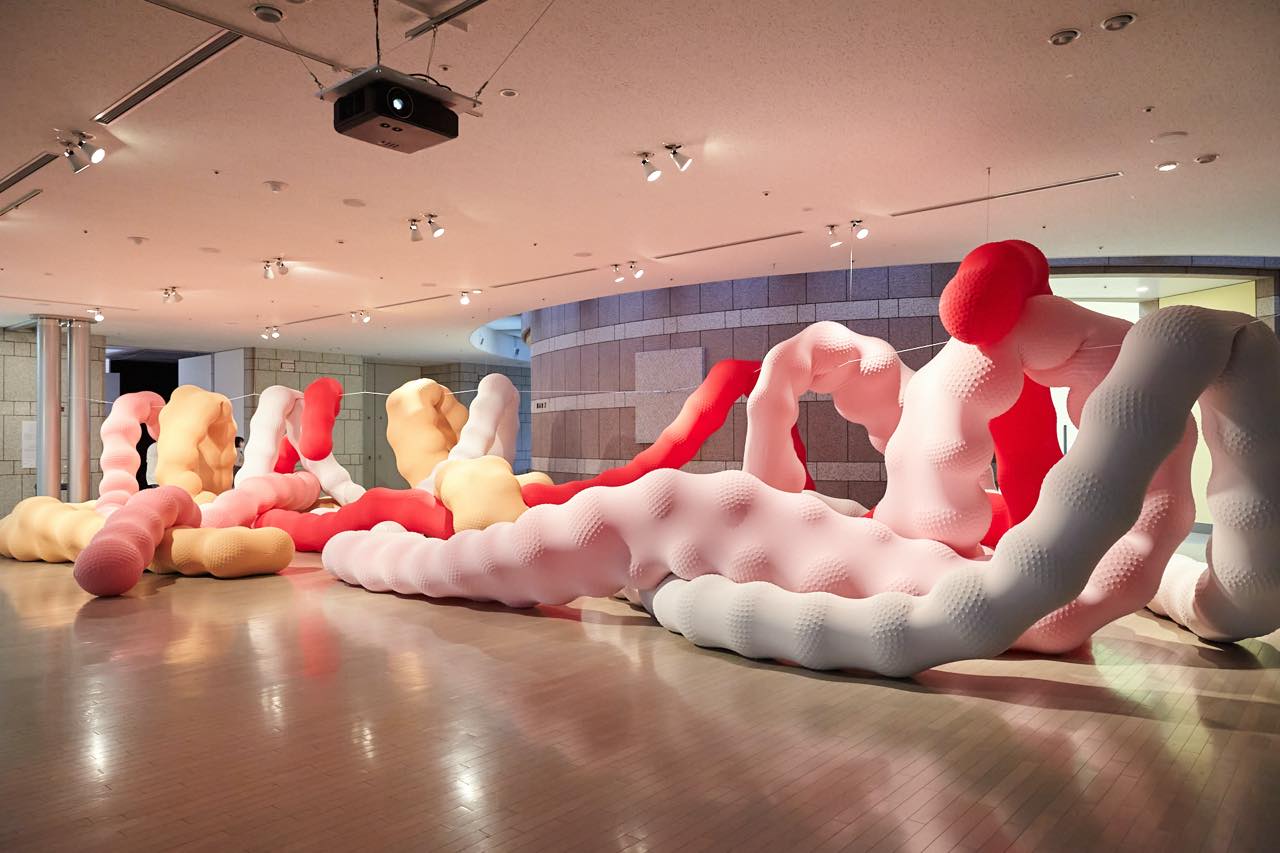 例えば、こちらの『からみあい』という作品は、お腹の善玉と悪玉がモチーフだ。作者は、肩こりをほぐす指圧グッズのように、人間のカラダにとって気持ちの良い形や感触に興味を持ちこの作品を作ったとのこと。