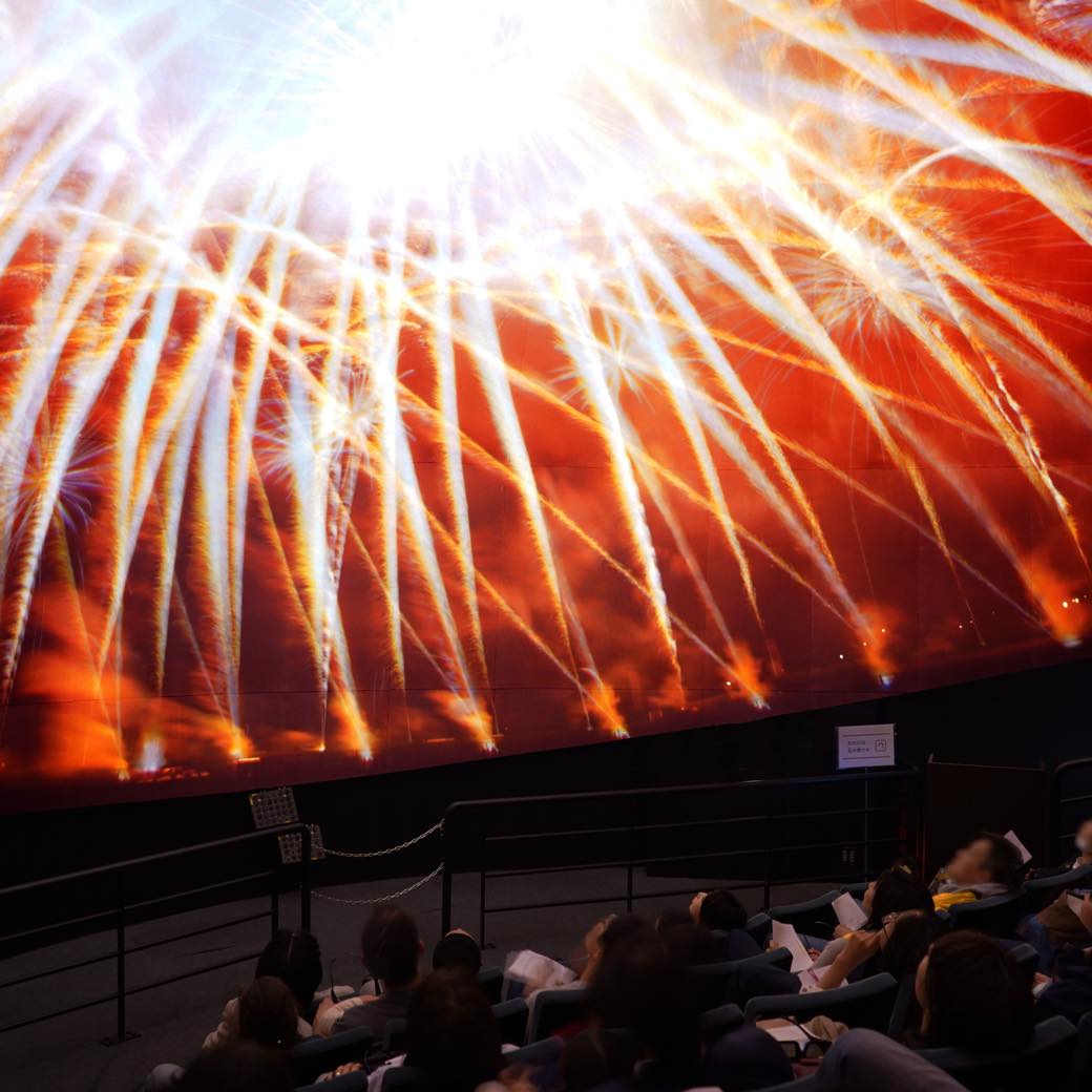 「ハナビリウム~花火って、なんであるの?」は、現役花火師らが10年もの歳月を費やし、試行錯誤の末に完成させたという花火の物語だ。実際に打ち上げられた約5000発の花火実写映像に加えて、江戸時代から400年以上も積み重ねられてきた歴史と技術を学べる内容となっている。映像にはフルドーム用に特別に設計された最先端の演出花火 「hanabi-rium360(R)」を使用し、360度全方位から5,000発が打ちあがる花火鑑賞を可能にした。