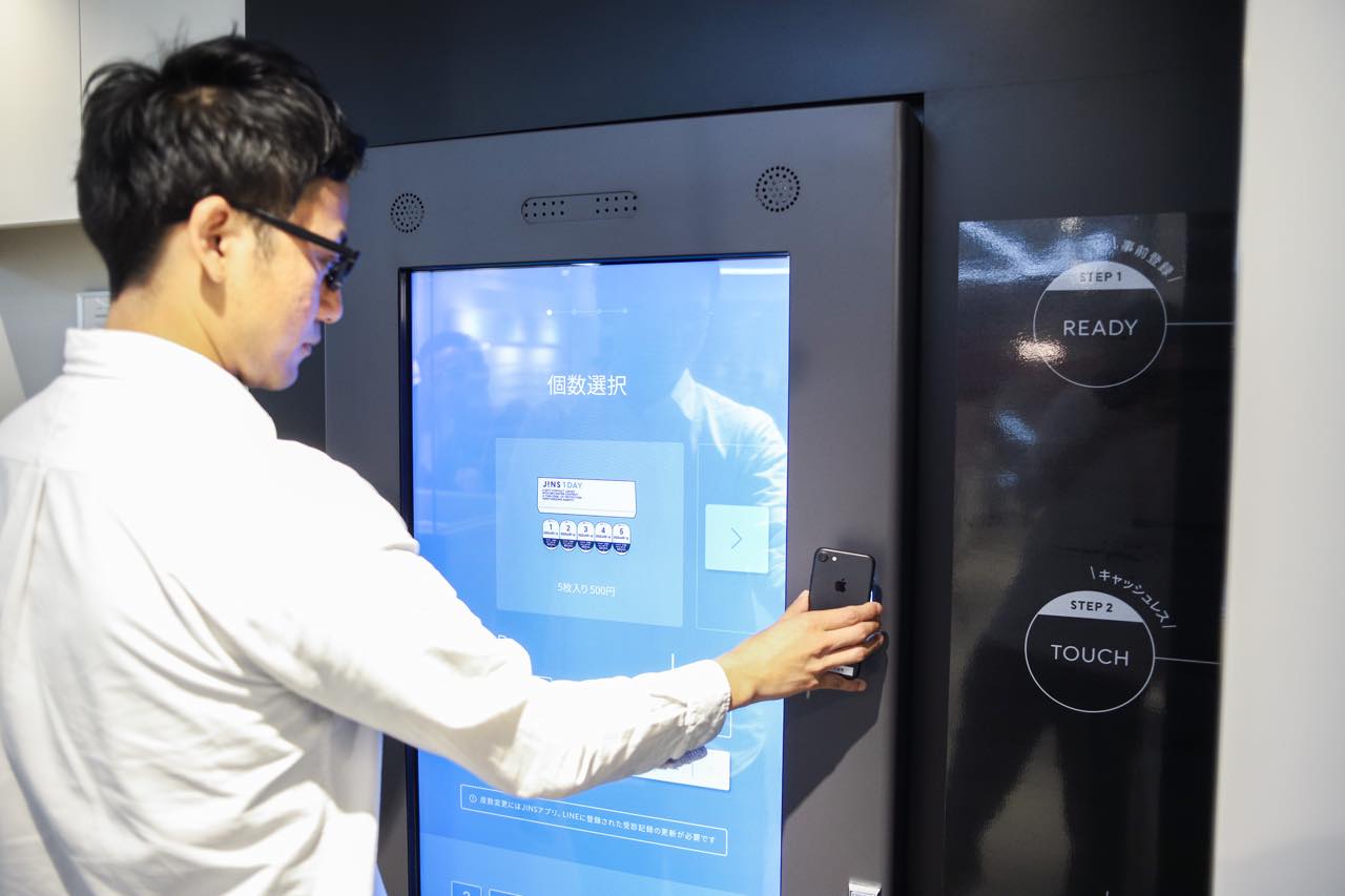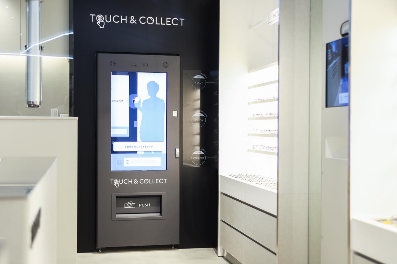 「JINS渋谷パルコ店」は、JINSの最新テクノロジーを結集した次世代型店舗。 メガネとコンタクトレンズの新しい購買体験を楽しめる。注目は、日本初のコンタクトレンズの自動販売機「TOUCH&COLLECT」。人気の使い捨てコンタクトレンズ「JINS 1DAY 5枚入」を購入することができる。
