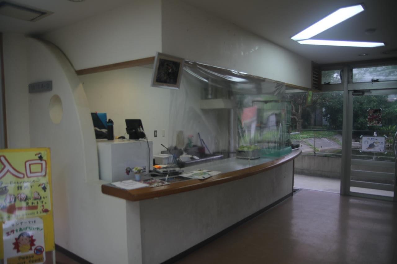 屋外施設が中心のネオパークオキナワだが、感染防止対策もしっかり行っている。カウンターのビニールカーテンやアクリルボードの設置のほか、屋内施設の入口や屋外の飼育ゾーンごとに消毒液を置いている。また、もともと飼育している動物を媒介とした感染症に対する対応策をしっかり準備しており、それをコロナ禍に合わせて再設定。対策は万全となっている。(2020年9月16日 午後4時頃 撮影)