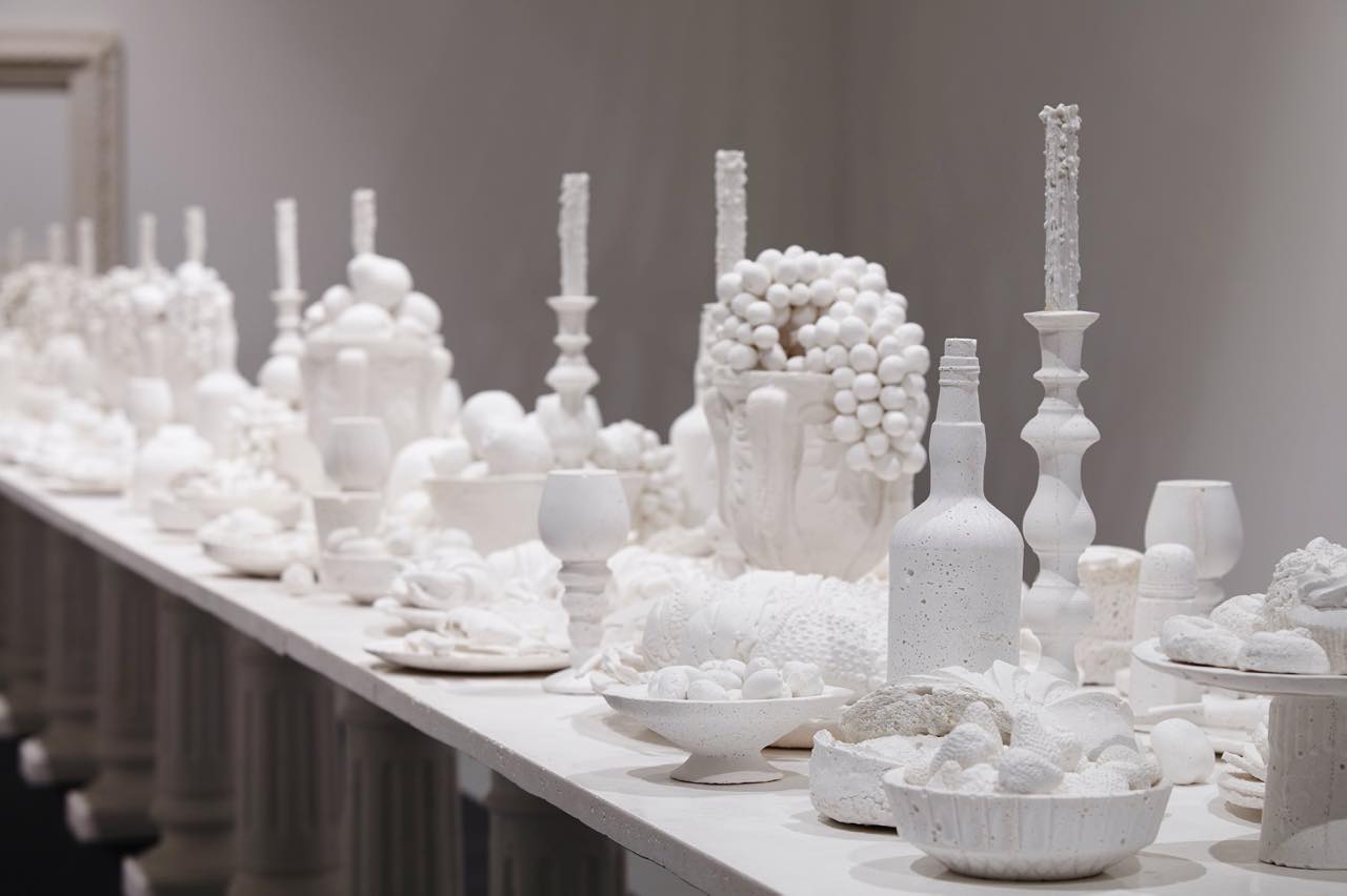 そのほか、地球規模で進んでいる珊瑚の白化現象を想起させる《Dysbiotica》や、晩餐会のテーブルの様子を“塩”で作り出し、オーストラリアでの大規模農業における過度な灌漑によりおきた塩害を想わせる《最後の晩餐》など、見応えのあるインスタレーションの数々を展示する。