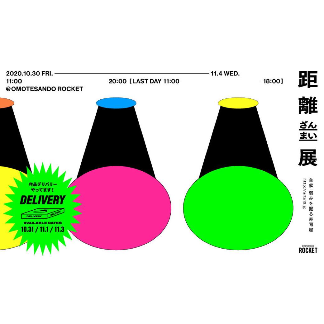 さまざまなバックグラウンドを持つ17人のアートディレクター団体「弱みを握る寿司屋」が企画した、「距離」をテーマにした展覧会「距離ざんまい展」が10月30日(金)〜11月4日(水)に開催する。会場は、表参道ROCKET。自宅で作品を鑑賞できるデリバリーサービスも実施され、ソーシャルディスタンスを気にせず気軽に参加できそうだ。
