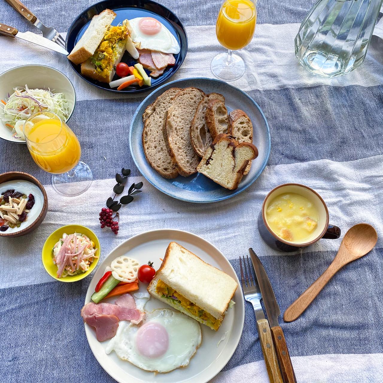 イベントに先駆けて、家で朝食を楽しむための特製「おまかせBOX」が12月8日から予約を受け付けている。青山パン祭り実行委員会メンバーで話し合い、今、出来ることは「毎日の食卓を充実したものにするお手伝い」 をと、パン店とともに考案した。カンパーニュやバゲットなど、年末年始の間、冷凍保存しやすいパンが中心に揃っている充実の内容。タルティーヌにしたり、サンドイッチにしたり。手元の材料と組み合わせて挟んで味わいたい。