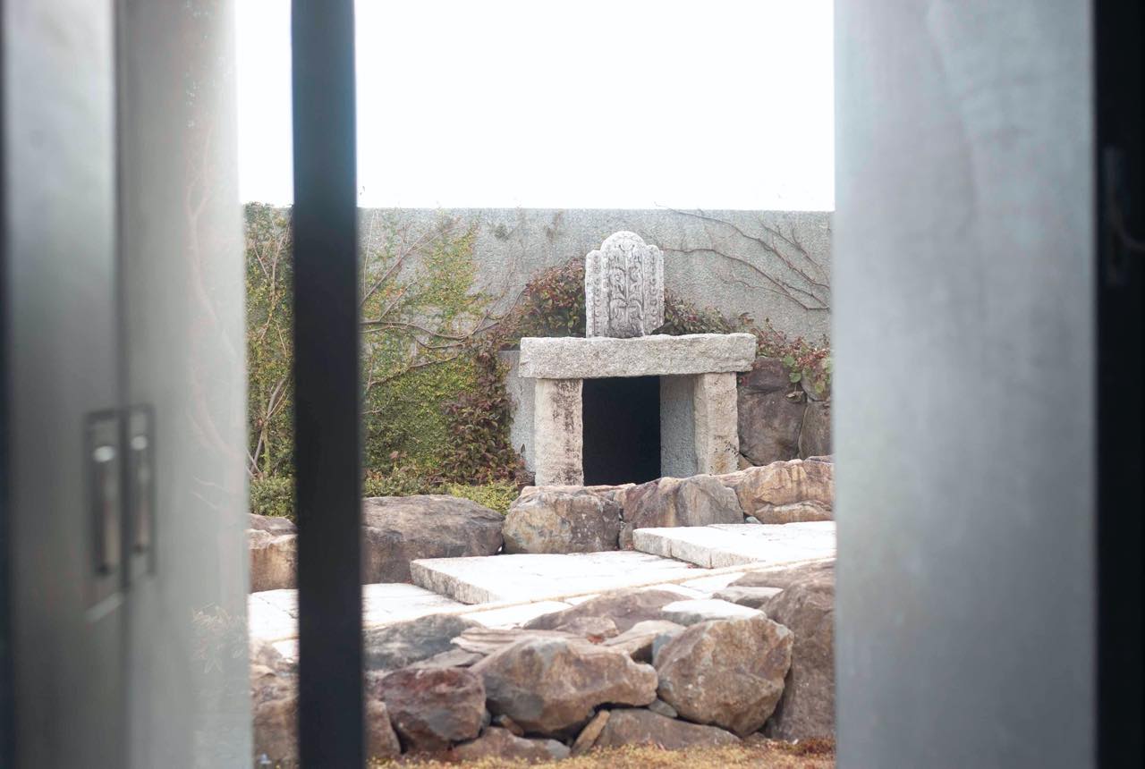 そのほか、石意外にも建築群に使用されているすべての素材に杉本博司らしさを感じることができる。たとえば上の写真の敷瓦は、彼が手掛けた「エンポリオアルマーニ」や「コーチ」のフラグシップストアが入る表参道の「オーク表参道」のエントランスで使用されているものと同じだそうだ。このように、施設には自身が手がける別の建築物とも共通の素材を見ることがあり、それを見つけ出すのも粋な楽しみかただ。一つひとつに注目して施設をまわるうちに、古の人々が大切にしてきたが素材が力強く表情豊かな存在であったことに不思議と気づかされるだろう。