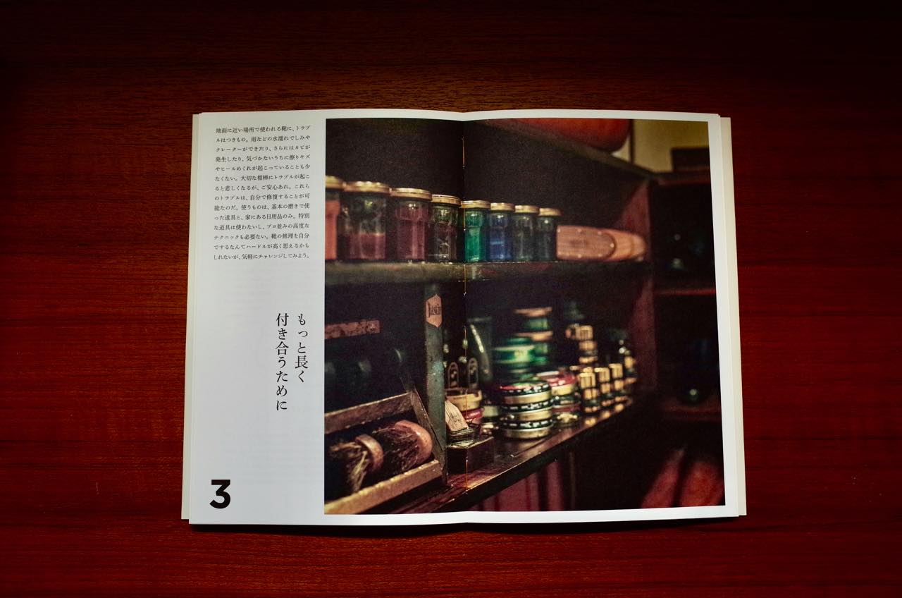 職人が靴を磨く姿を見て感銘を受けたなら、次はその技術の奥深さを、本を使って体験しよう。靴磨きは流派のように人によってやり方が異なり、ひとつの工程をとってもさまざまな方法や哲学がある。そんなとき指針にしたいのが、日本の靴磨きに先鞭をつけた、「ブリフトアッシュ」の長谷川裕也さんの著書『靴磨きの本』(亜紀書房刊)だ。基本の工程から革の特性、テクニックを網羅しており、靴磨きを行う人たちの間では、基本が学べるバイブル的1冊として重宝されている。これから靴磨きを始めるという人でも、本書で基本を学ぶことでプロセスのイメージしやすくなるだろう。さらに、読み込んで革について興味を深めることで、革靴を買う時によい一足が選べるようになる。さらに、靴磨きを哲学的に解いた『続 靴磨きの本』(亜紀書房刊)とセットで読むと、靴磨きを通した職人たちの生き方まで垣間見え、読み物として楽しめる。