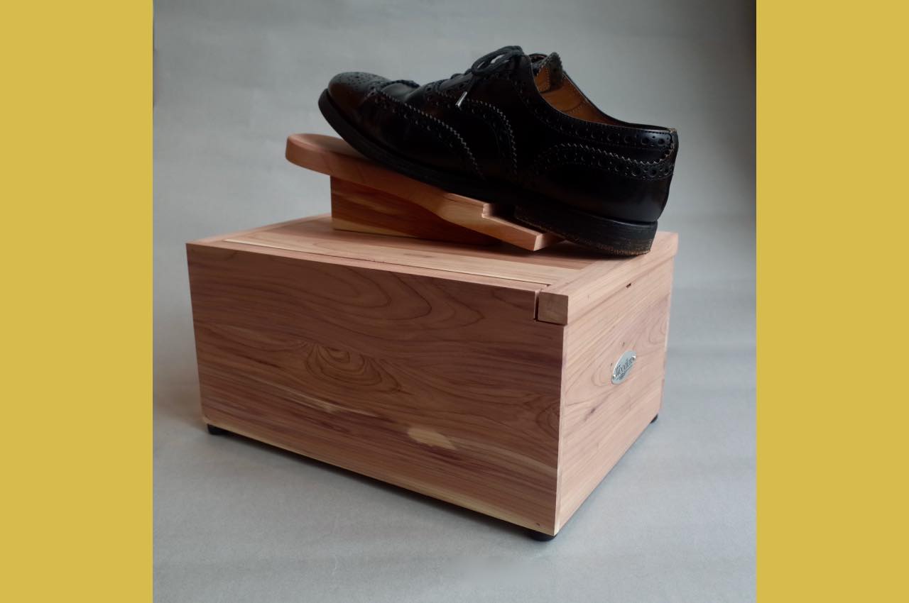 本格的な道具をひとつ持っていれば、靴磨きへのモチベーションもアップするはず。そこで選びたいのが、老舗ブランドの信頼できるアイテム「ウッドロア」のシューケアボックスだ。こちらは、“アメリカ大統領の靴”として知られる紳士靴ブランド「アレン・エドモンズ」のシューツリーに指名されたこともあるボックス型のケアグッズ。高い吸湿性と芳香を漂わせるレッドシダーによる見た目の美しさと機能性が醸しだす美しさはほかとは一線を画す。その芳香をかぎながら職人のように専用のスタンドに靴を置いて磨くことで、心の充実感も得られる。