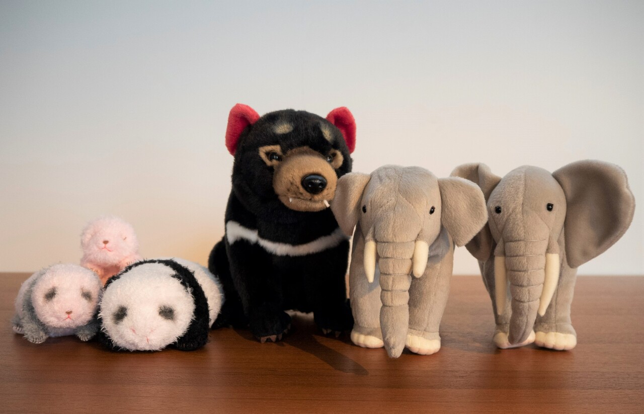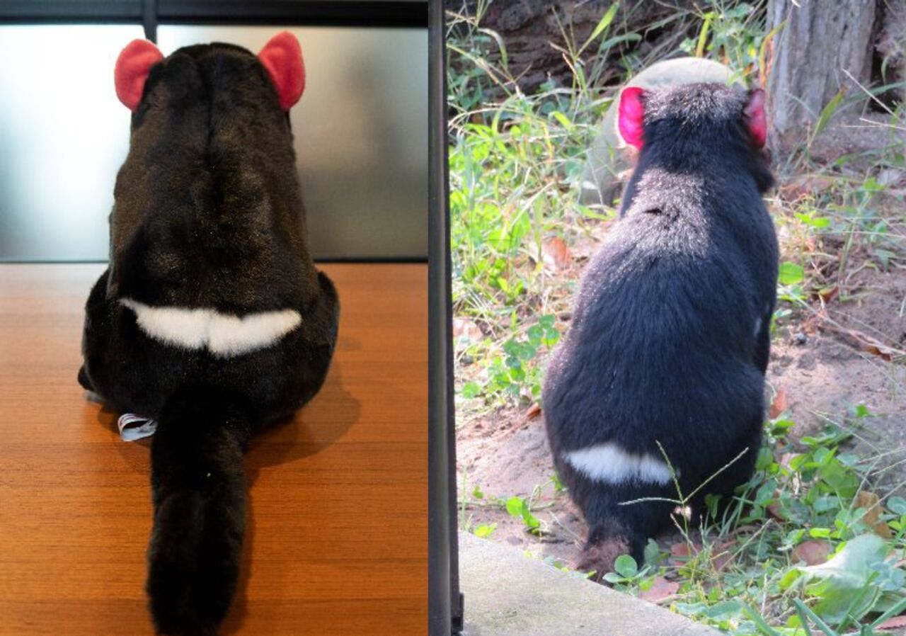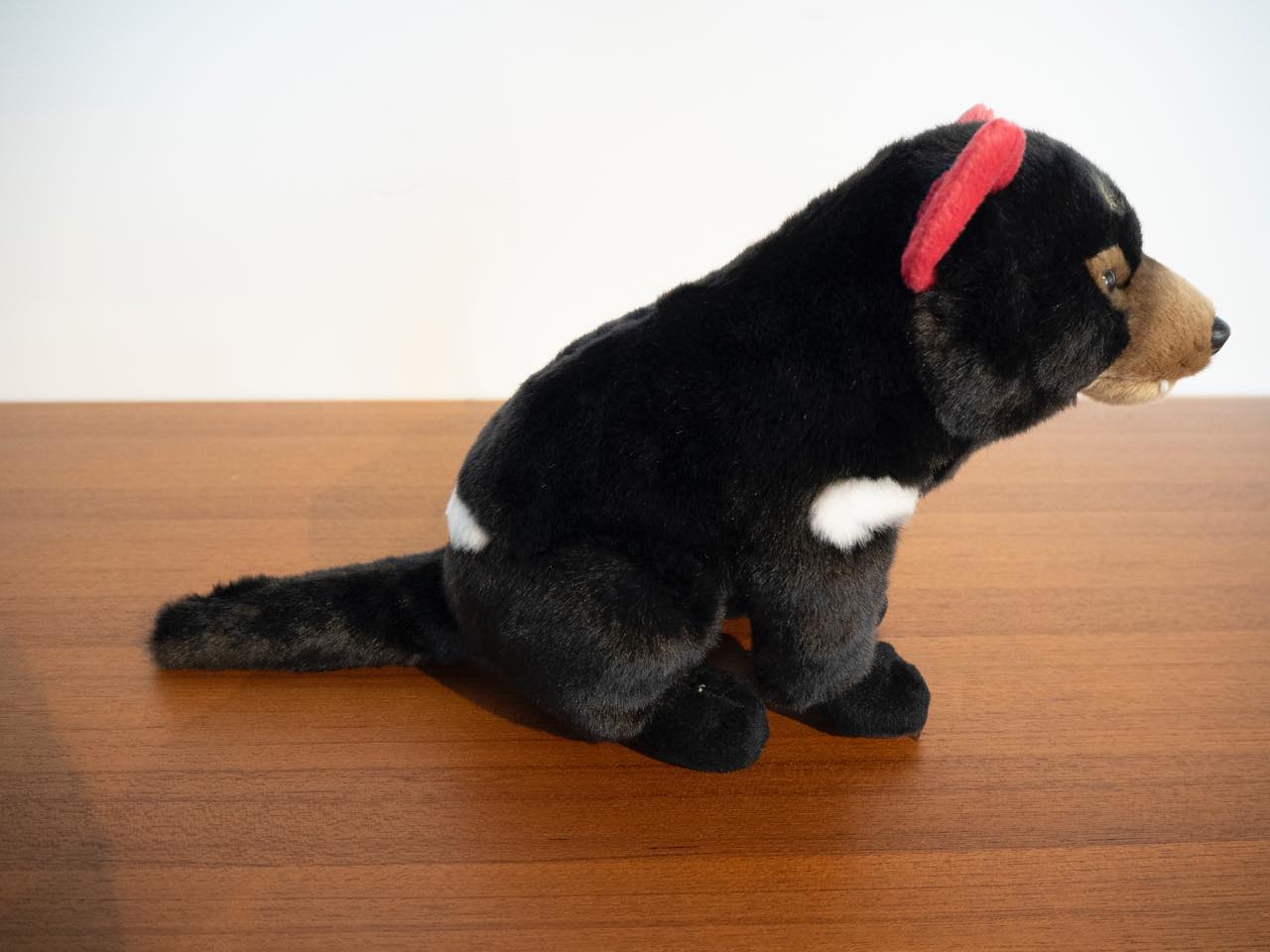 最後に筆者の一押しはタスマニアデビル。ずんぐりした体形の再現もさることながら、特徴的なお尻の白いライン、耳の透け感が本物そっくり。ぬいぐるみの特徴をおさえて、ぜひ生きた姿と見比べてほしい。