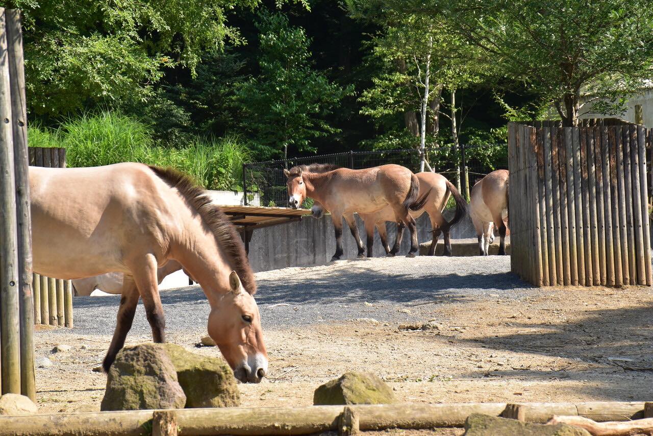 たとえば2013年にオープンした「アジアの平原」エリアでは、坂道の高低差を利用してモウコノウマとタイリクオオカミを展示。まるでふたつの群れが一体化しているように見え、周囲の植樹も相まって、2種の生息地を覗き込むように景観がデザインされている。