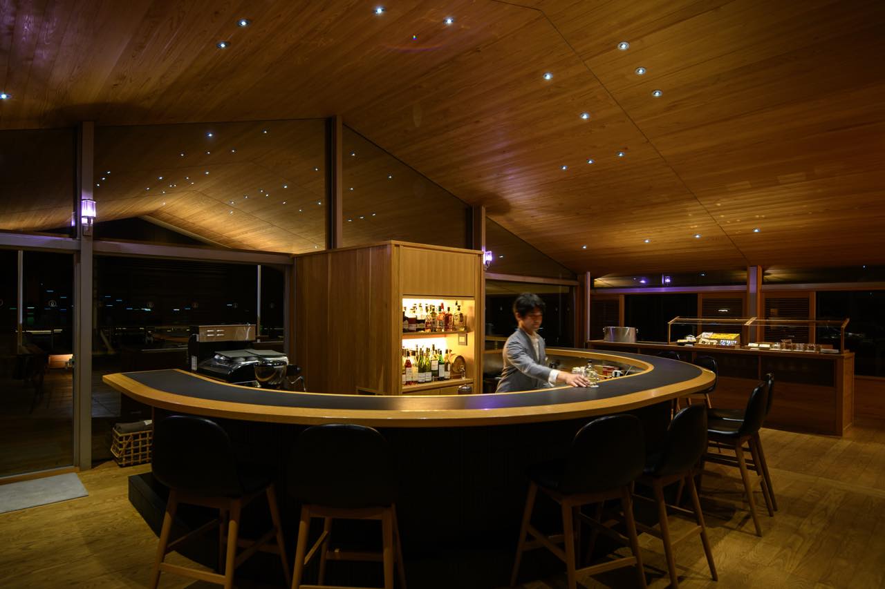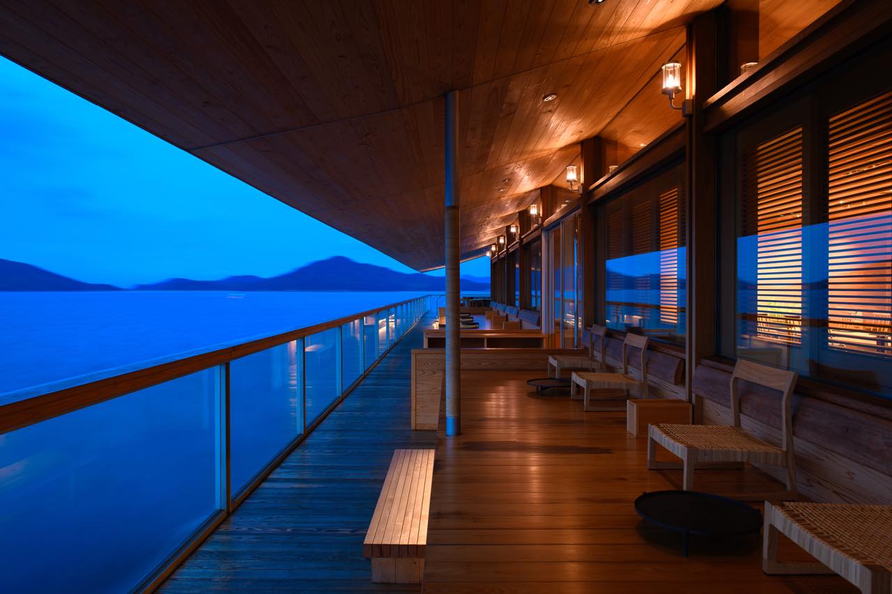 “To truly appreciate the beauty of the Seto Inland Sea, experiencing it from the sea rather than from the land is crucial. Therefore, it is essential to create a relaxing atmosphere on board the ship. We pursued how to provide guests with a leisurely experience, resulting in a warm and inviting space abundant with wood.”